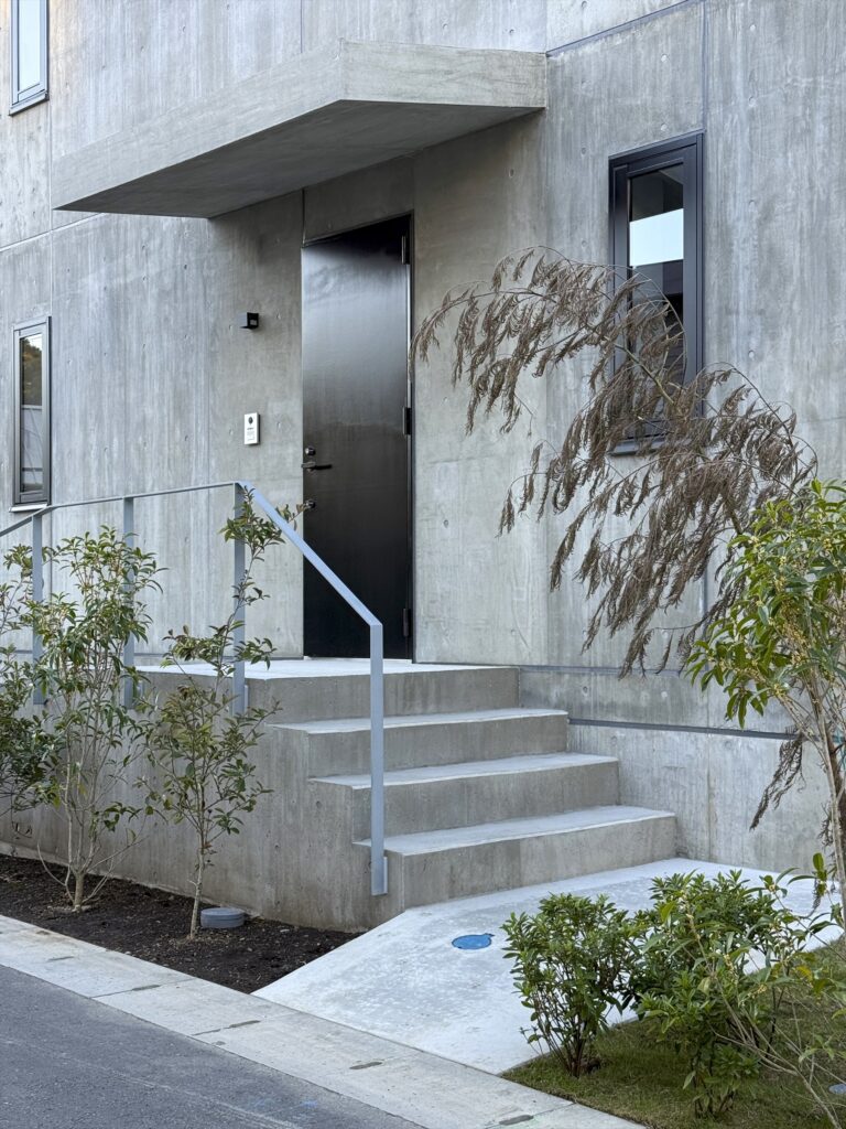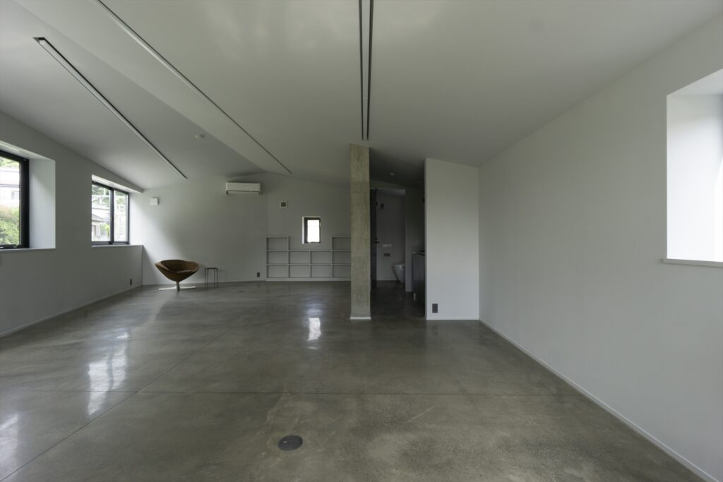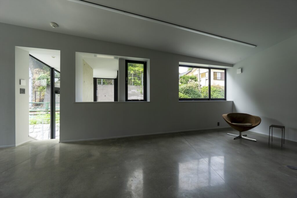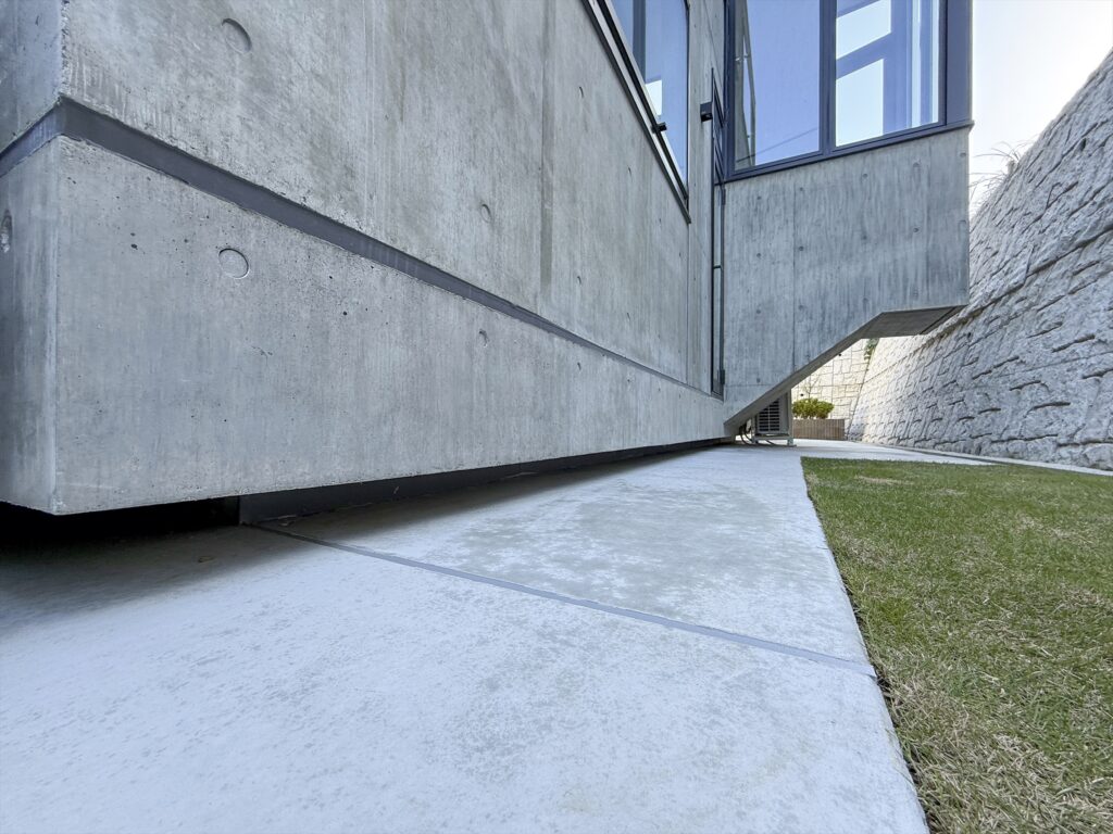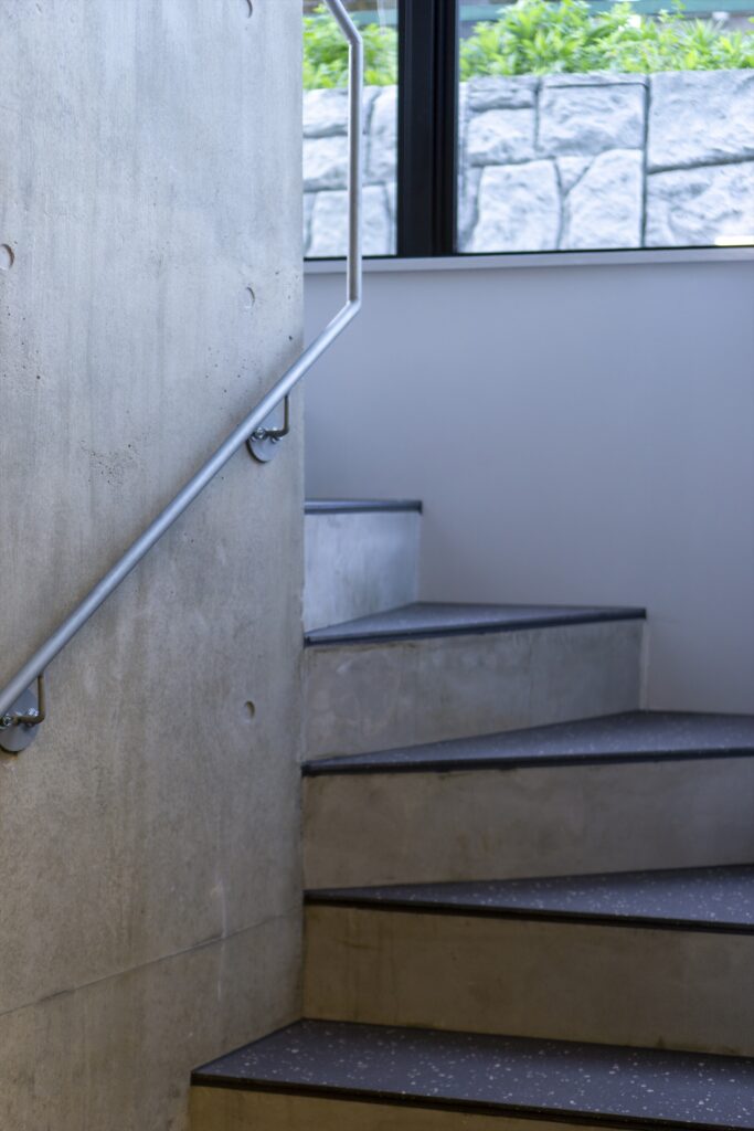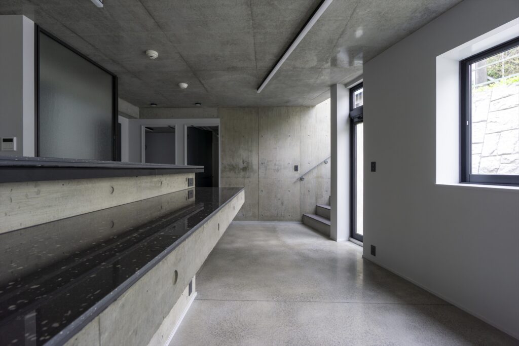 By using ordinary plywood for the formwork, which leaves a slightly rough, soft texture on the concrete surface, the design aims to create a gentle impression that harmonizes with the Kamakura townscape, despite being an RC structure.