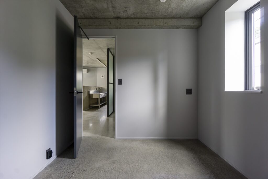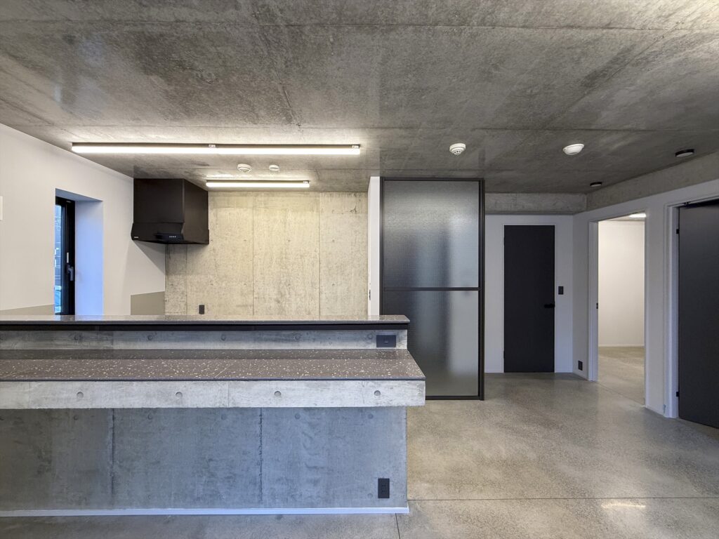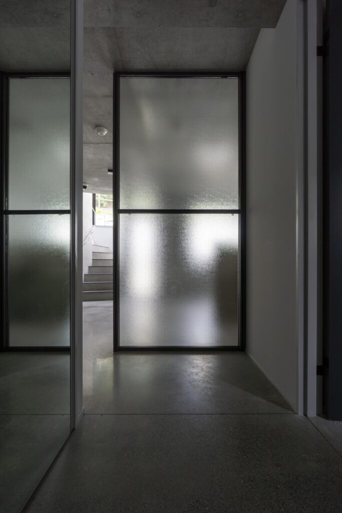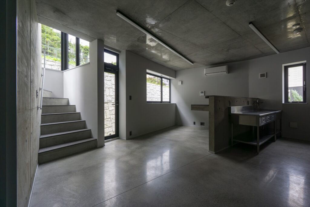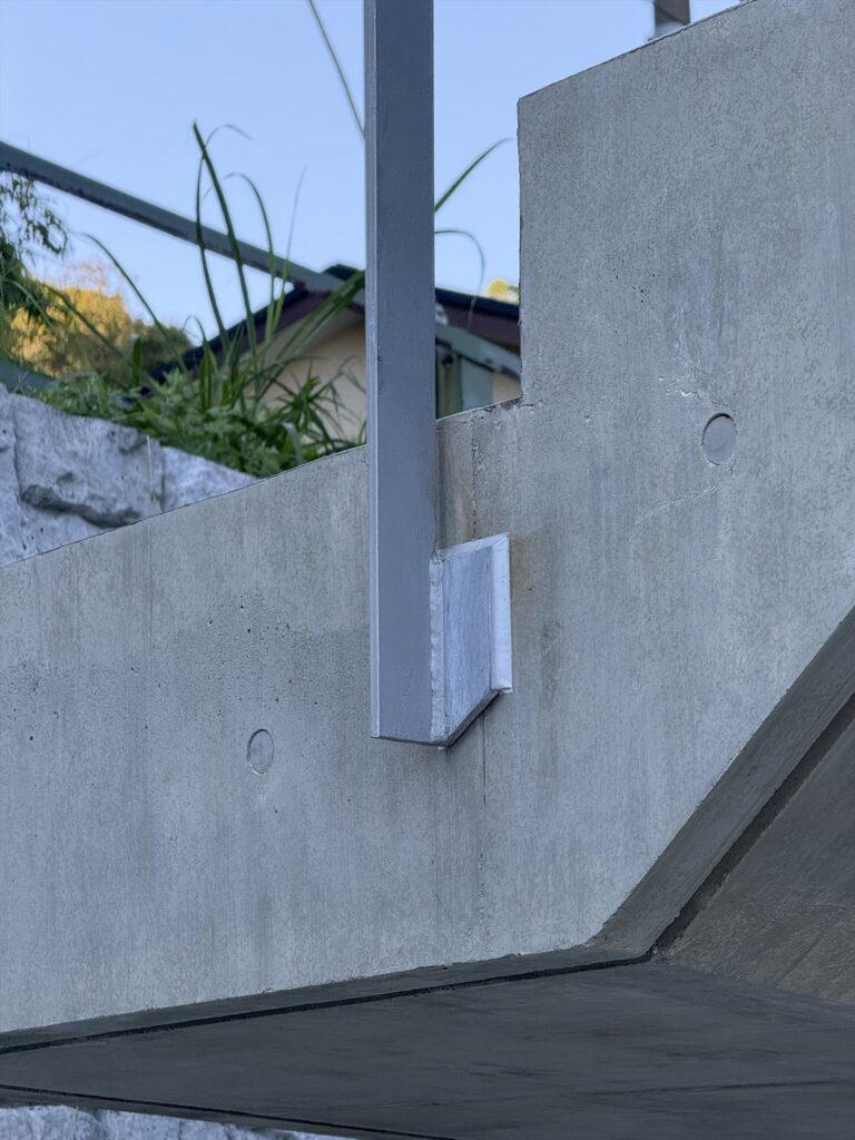 By using ordinary plywood for the formwork, which leaves a slightly rough, soft texture on the concrete surface, the design aims to create a gentle impression that harmonizes with the Kamakura townscape, despite being an RC structure.